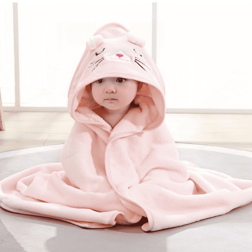 Make bath time extra special with the Baby Hooded Bath Towel. Designed with an adorable animal face hood, this ultra-soft coral fleece towel keeps your baby warm, dry, and oh-so-cute after every bath.
