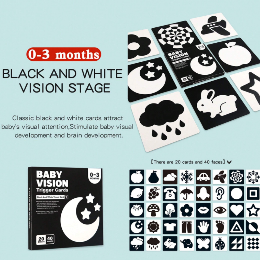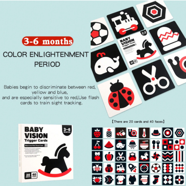 Give your baby the best start in visual and cognitive development with our Baby Vision Trigger Cards – the complete early education set designed for newborns through 36 months!