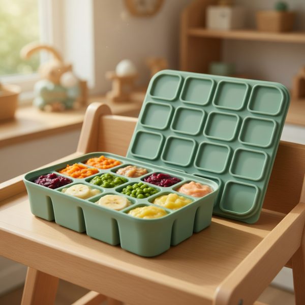 Premium food-grade silicone freezer tray with 4/6/12 compartments and a lid. Perfect for batch-prepping and storing homemade baby food purees, breast milk, fruits, vegetables, or meals. Easy pop-out design for effortless release, freezer-safe, microwave-safe, dishwasher-safe. BPA-free, phthalate-free, and non-toxic for safe baby use. Ideal for larger portions during weaning stages.